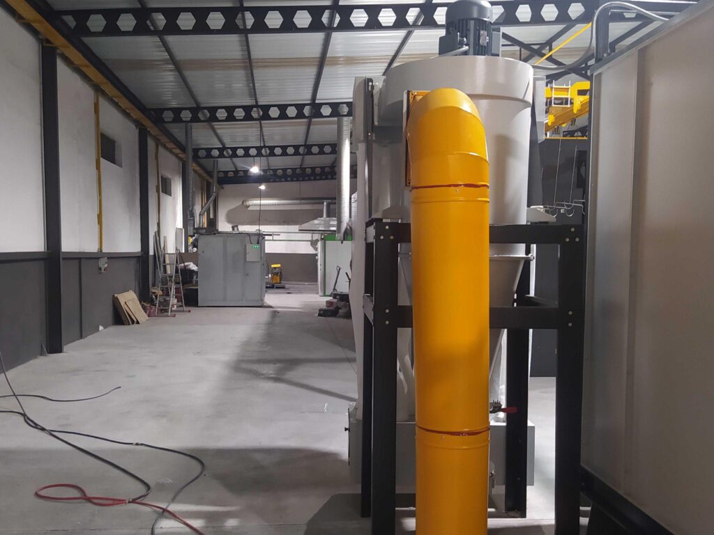 Siklon toplayıcı sistemi, kabin içinde oluşan toz boyanın %98’ini geri kazanır, bu sayede maliyet ve çevre dostu bir çözüm sunar.