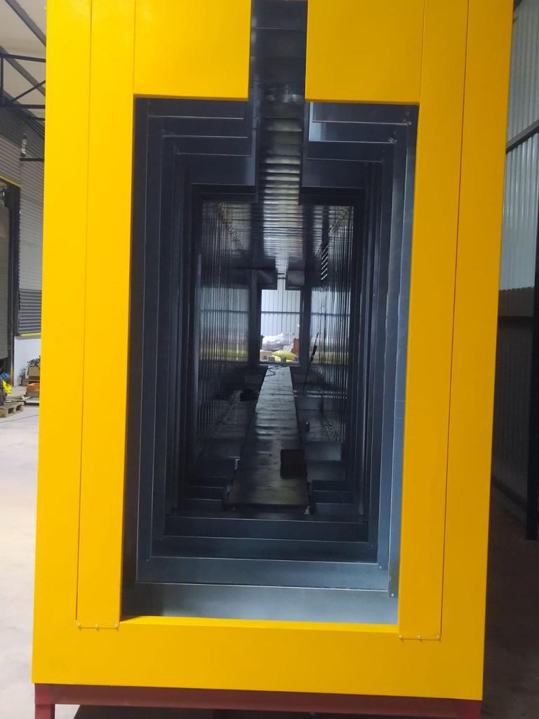 • Giriş hava perdesi: 2.2 kW gücünde, 4.500 m³/h hava akışı sağlayarak malzeme üzerine uygulanan toz boyanın dağılmasını engeller.
