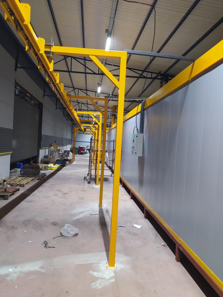 1. Yükleme: Toz boya uygulanacak malzemeler, konveyör sistemine asılarak fırın girişine yönlendirilir.